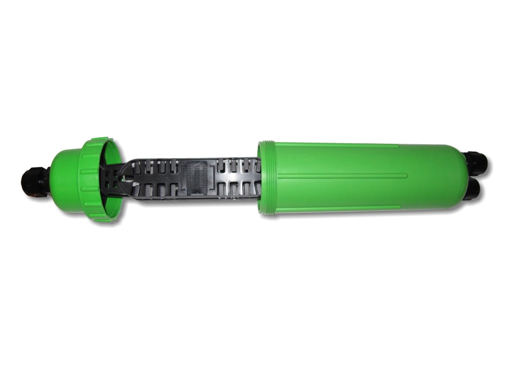 - Muffe IP68 zum Verbinden und Aufteilen von LWL Kabel bis 48 Fasern